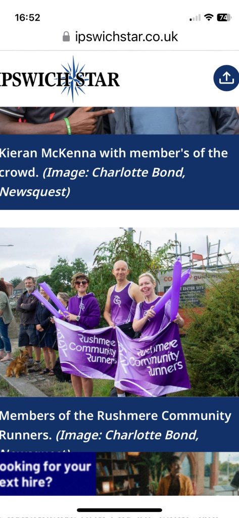 Well done all our runners that took part and supported at today’s Ipswich half marathon. The supporters from RCR were out in force providing a big boost and purple wall of sound to our runners. Almost as many many turned out to support the purple army than actually ran it.
